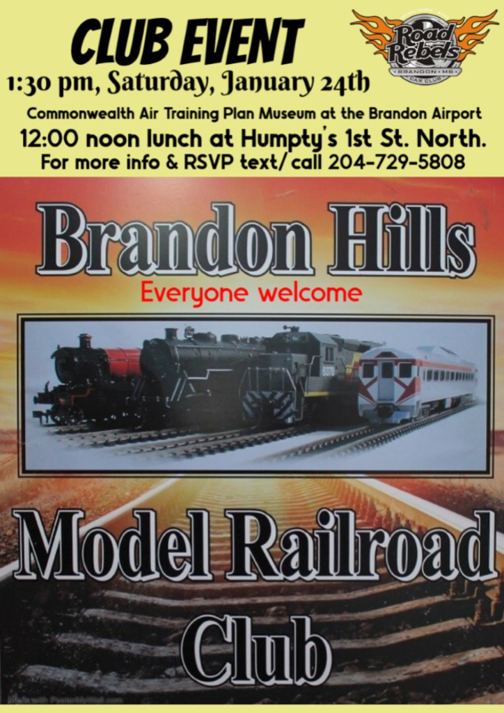 Joseph Sandy (member #80) has organized a club event at the Brandon Hills Model Railway Club on January 24th.